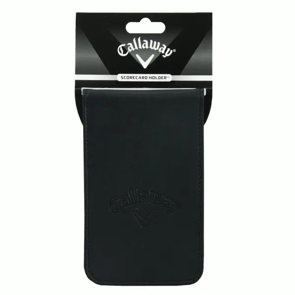 Keep organised on the golf course with the Callaway Deluxe PU Leather golf scorecard holder Featuring 2 x elasticated corded bands which safely secure your golf scorecard in place This high-quality golf scorecard holder is embossed with the Iconic Callaway Golf logo