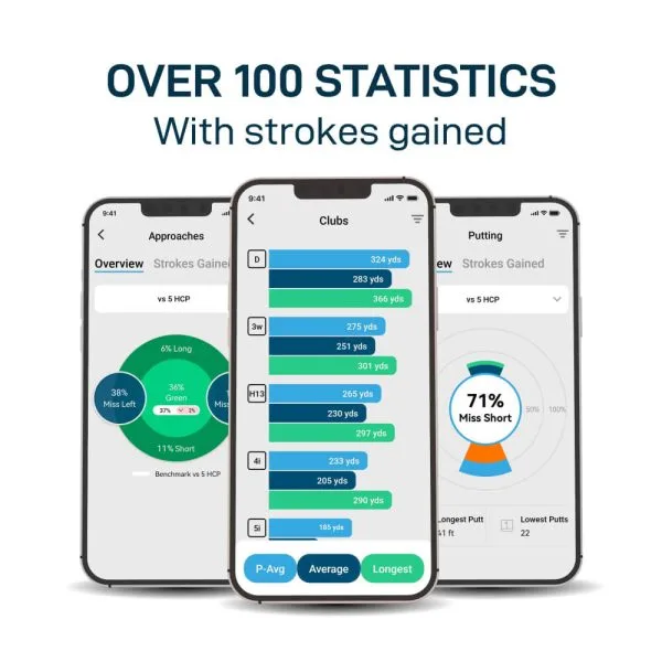 ● Post-round review 100+ statistics on your game including Strokes Gained and handicap benchmarking