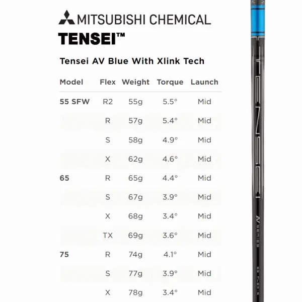 - Stock Shafts: TENSEI AV Series Blue 55, TENSEI 1k Black 65
