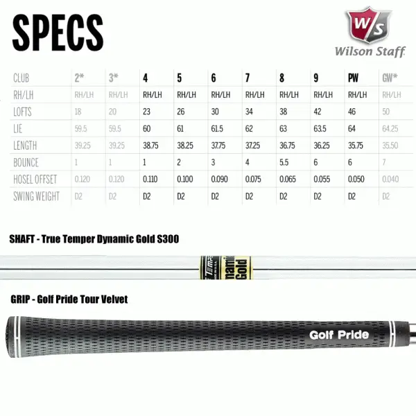 Wilson outfits the Staff Model CB Irons with True Temper’s Dynamic Gold Shaft and Golf Pride’s Tour Velvet Grip, the #1 shaft and #1 grip played on tour.